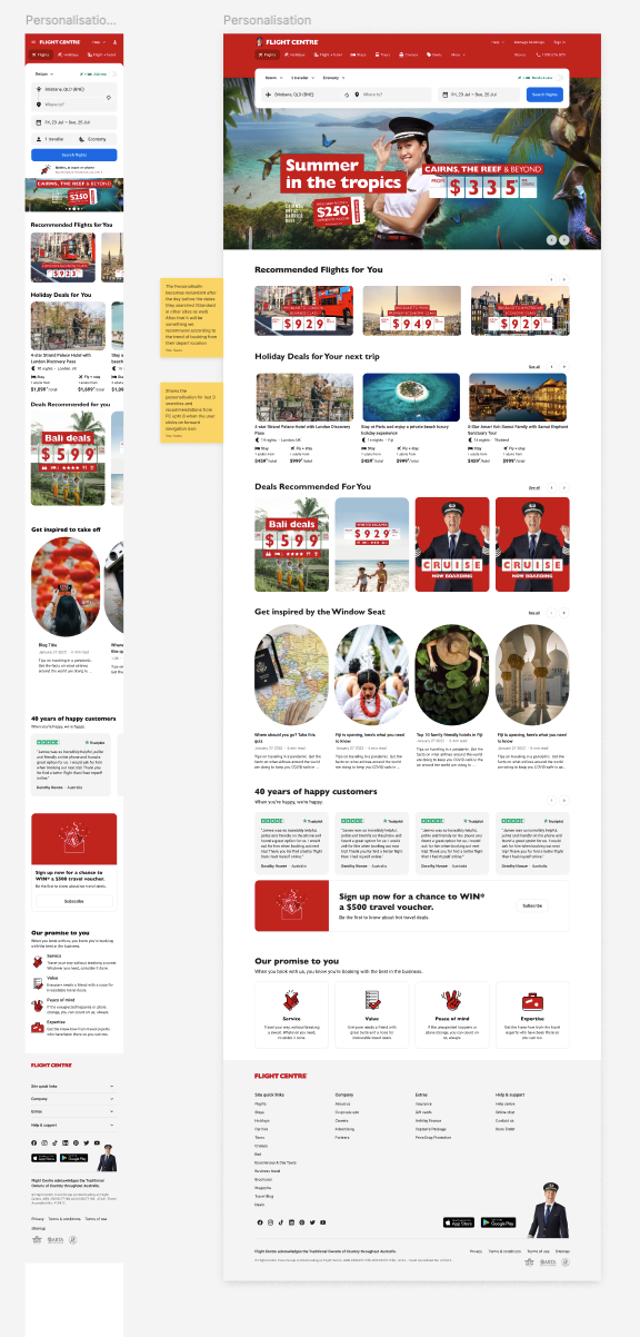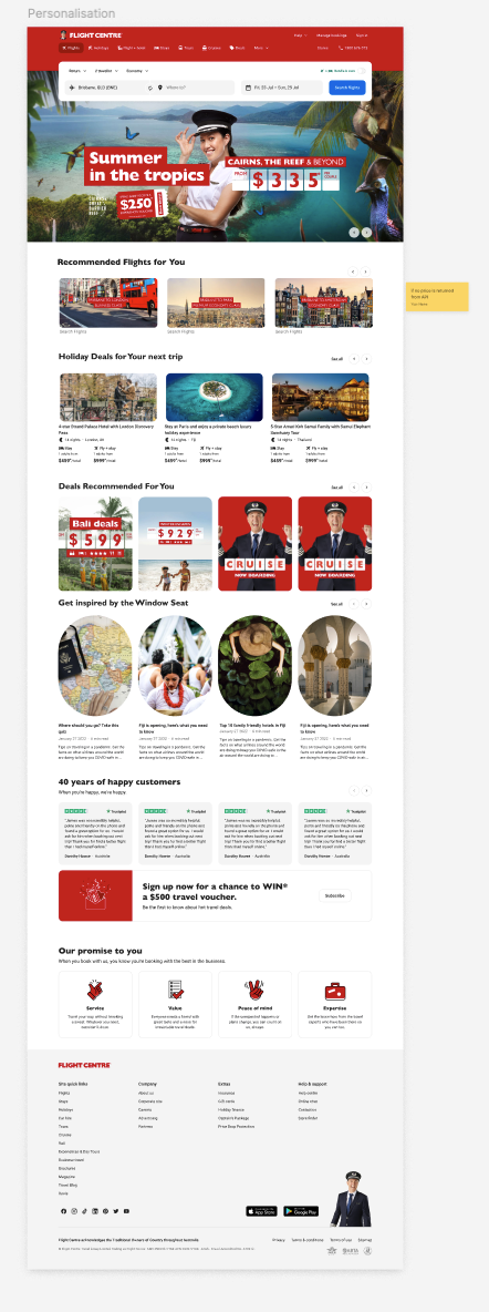 Flight Centre Homepage Personalisation
